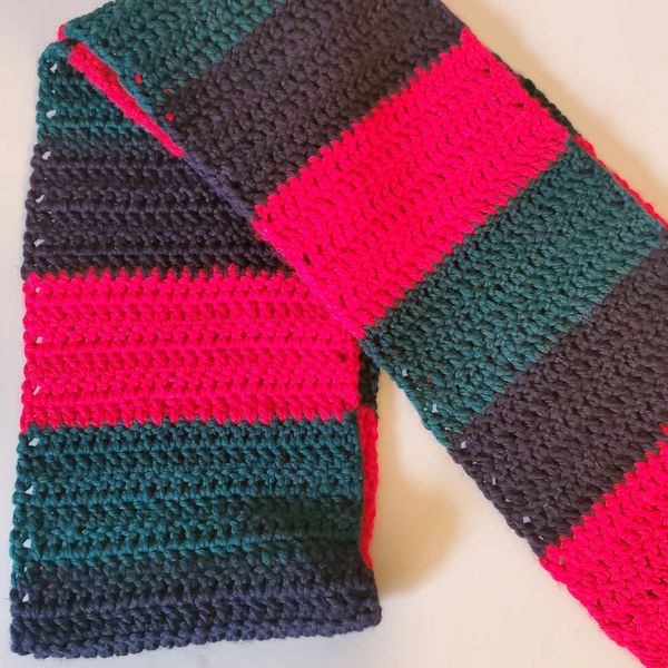 single crochet, changing colors, tassels, and finishing off your scarf.
